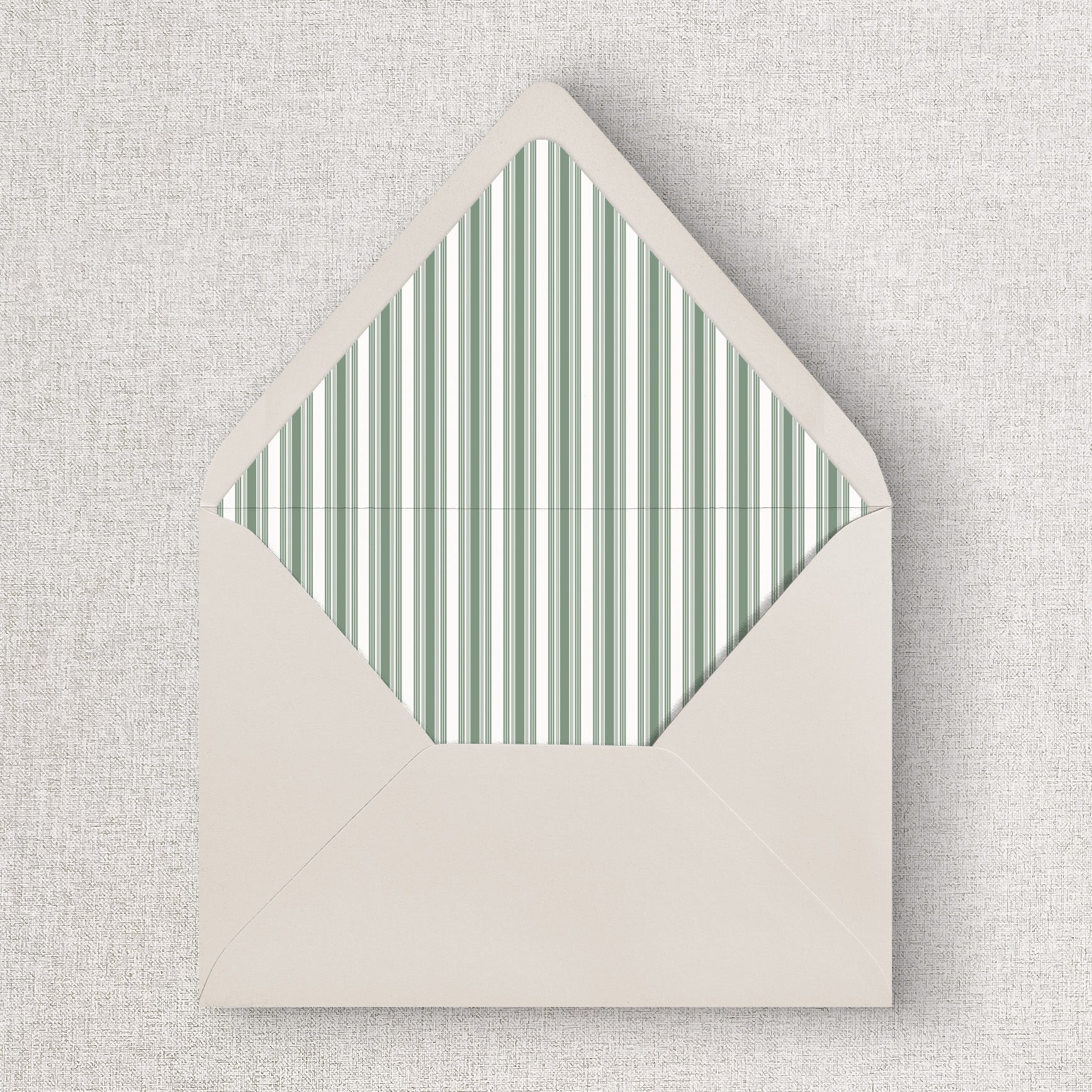 Give your guests a great first impression of your wedding invitations with an beautifully designed Outer Envelope Liner. The Classic Stripes Envelope Liner is seen in The Palm Beach Wedding Invitation Collection.