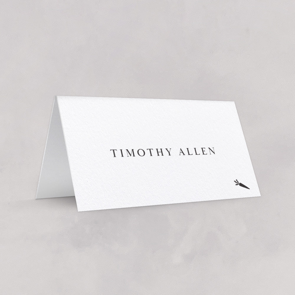Available as a place card or an escort card design, theses tented cards will match the Classic Venue Wedding Invitation design, and stand without a holder.