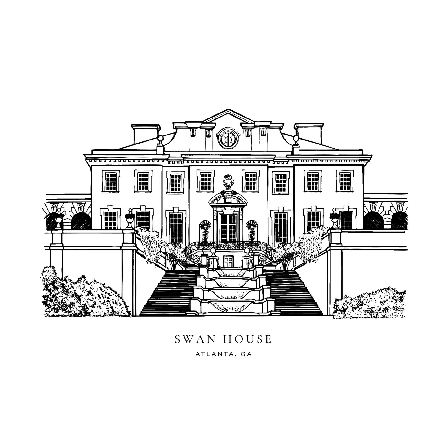 Personalize your next project with a venue illustration of the Atlanta History Center's Swan House in Atlanta, Georgia. With two licensing options, you can use the illustration on personal projects like wedding invitations or an art print for your home, or you can use it for commercial purposes to create products for your business or a client.