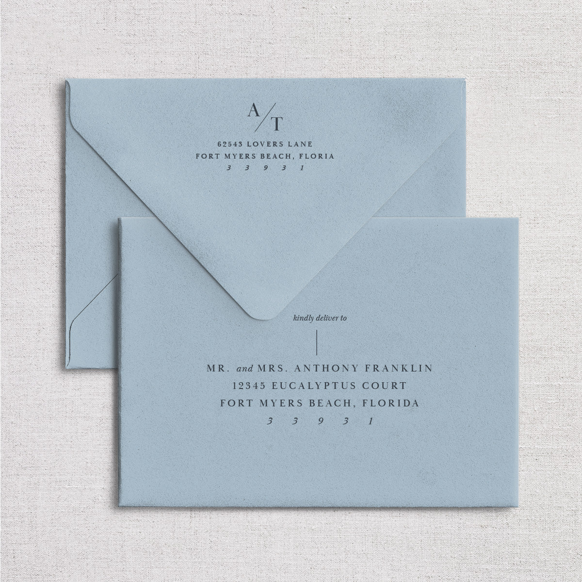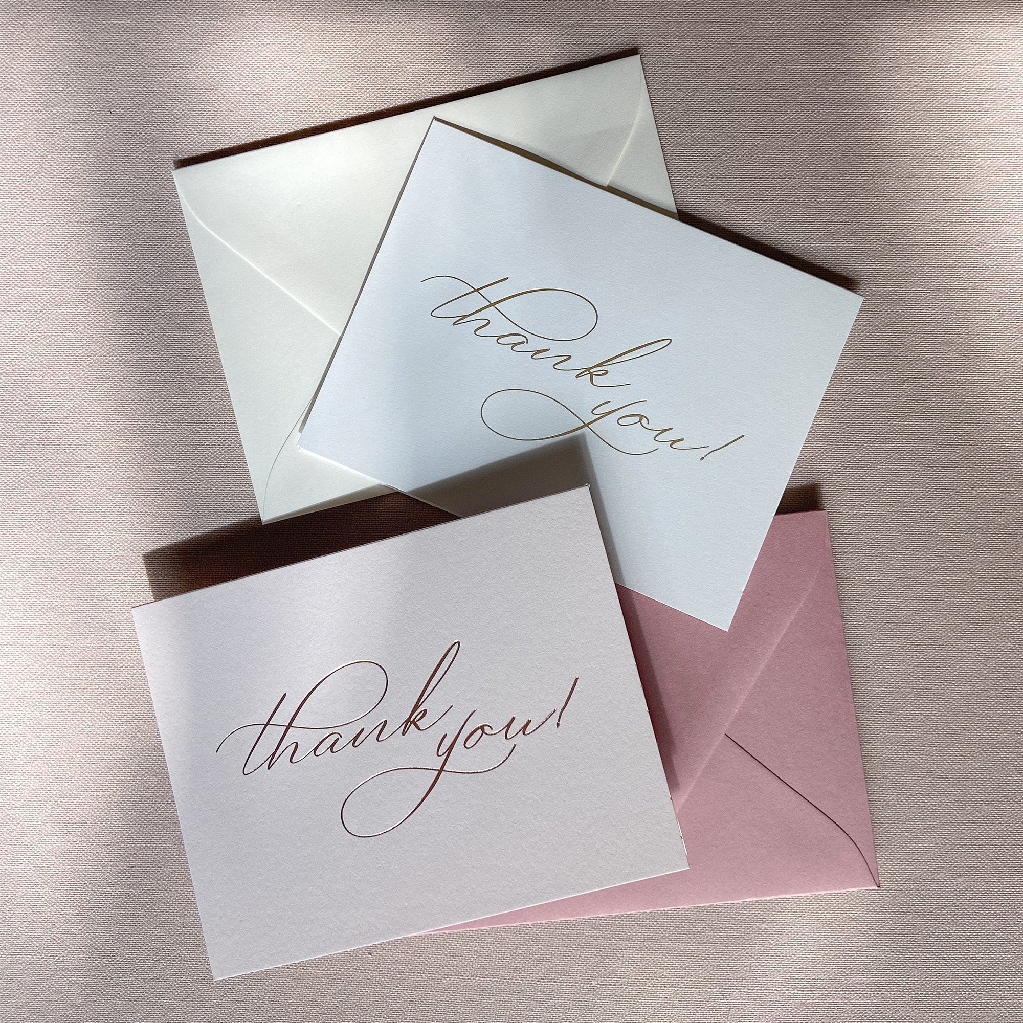 Flat/Digital Printed stationery have a minimum quantity of 10. Foil Press stationery has a minimum quantity of 40.