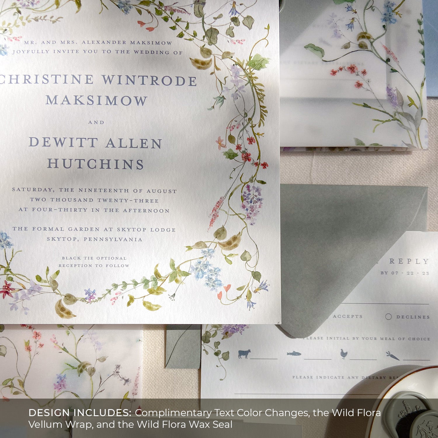 Semi-custom invitations and stationery allows ink and paper customizations, as well as select text changes. Alternate fonts and watercolor adjustments are available when indicated.