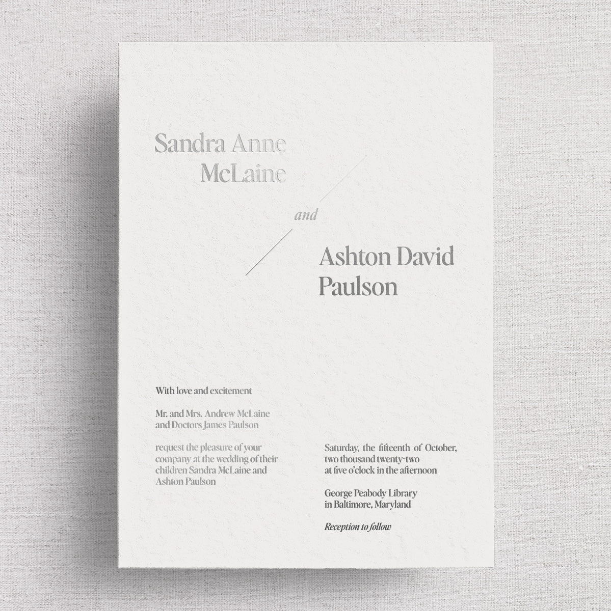 The Peabody Wedding Invitations are inspired by the beauty of vintage editorial typography and create a modern spin on the traditional wedding invitation design.