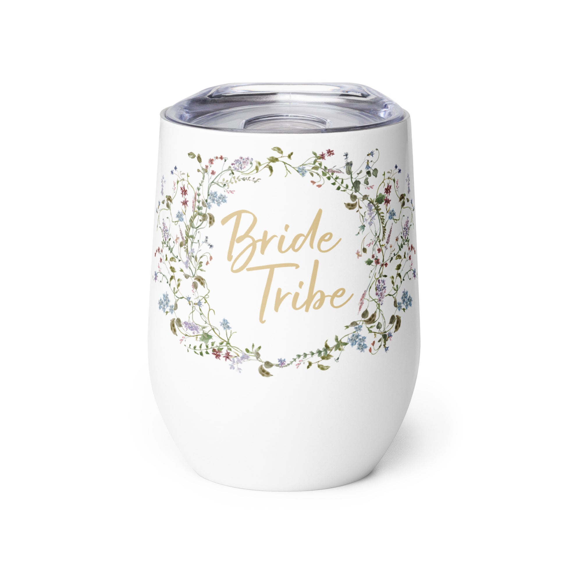 Keep your bridesmaids on-brand with the Wild Flora "Bride Tribe" Wine Tumblers. They make the perfect addition to your bridesmaid gift boxes and bags!